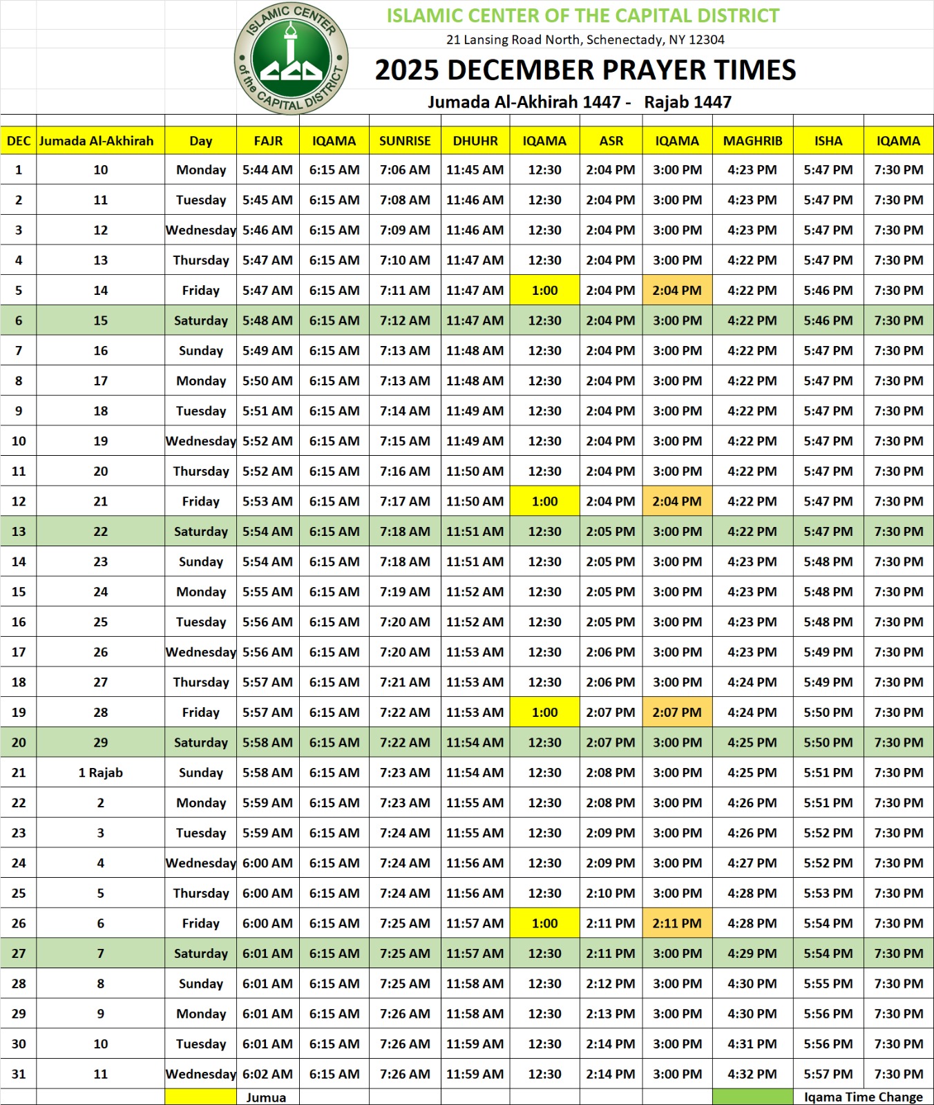 C. Contact: Either email imam.yaki@iccdny.org or info@iccdny.org call at 480-385-8240.
